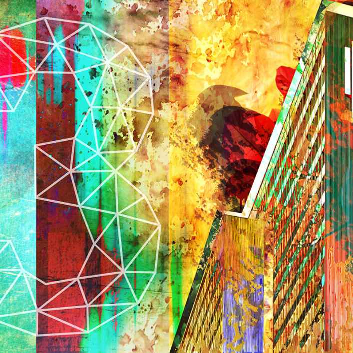 Hochwertige, moderne und abstrakte künstlerische Kunst Bilder, Collagen mit Motiven aus Düsseldorf.